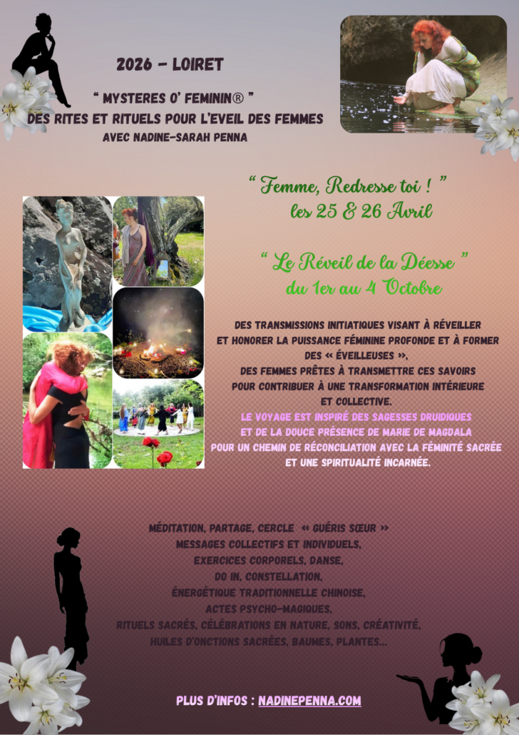 LOIRET – stage » Femme, Redresse -toi ! » de l’Ecole des Mystères O’ Féminin®, des Rites et Rituels pour l’Eveil des Femmes «