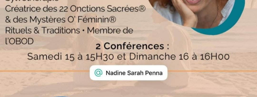 “ Nadine-Sarah a toujours été porteuse d’un don ; après une NDE, Elle reçoit les Messages de Sagesse de Myriam, la Magdaléenne qu’elle transmet, depuis plus de 25ans, pour éclairer la route des êtres en quête de sens. Nous vous invitons à découvrir comment et » outil » unique avec des Messages Médiumniques.